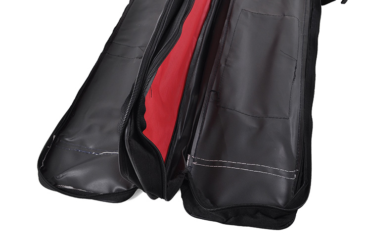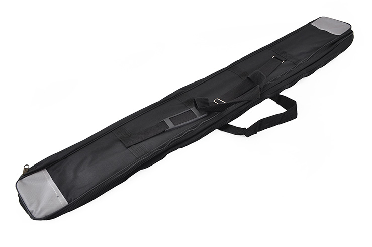 Housse de transport de 125 sur 20 cm, avec deux compartiments, pour deux armes. Toile synthétique, bretelle, deux fermetures éclairs et 2 poches extérieures. Cette housse est assez large pour transporter des sabres nandao. Longueur : 125 cm |