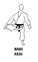 | Kakato Geri : Coup de talon. Frapper avec le talon sur le dessus du pied du partenaire. | Mikazuki Geri : coup de pied circulaire de la plante du pied. Il est porté de l'extérieur intérieur. | ||