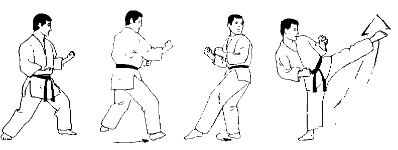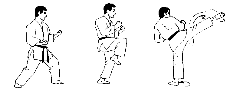 | Gedan Geri : coup de pied bas. Il est porté avec le tranchant du pied sur la partie de la jambe, de l'adversaire, située sous le genou. Cedan-geri Coup de pied bas |