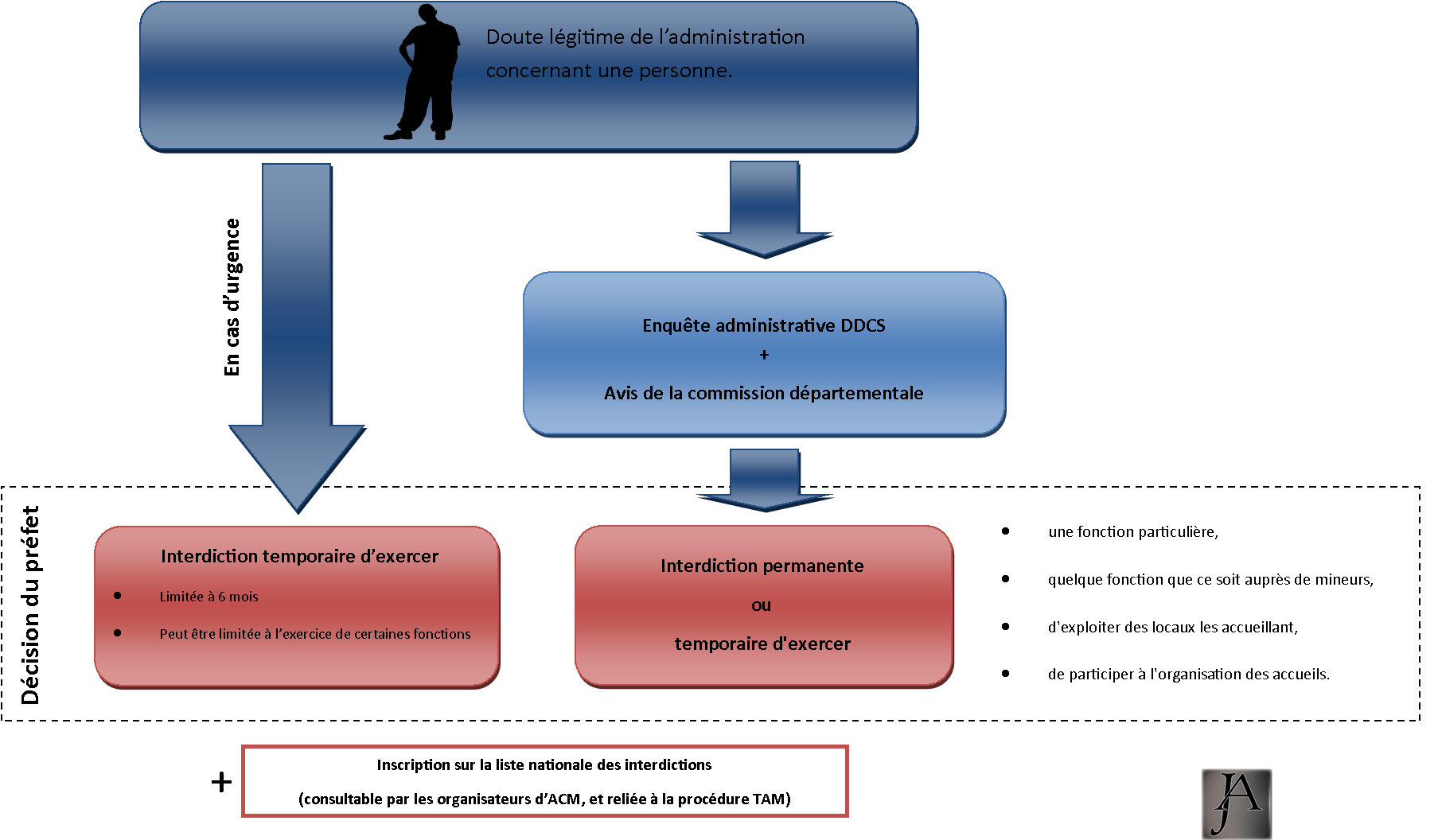 II/ Les interdictions administratives Les interdictions administratives peuvent être décidées selon le schéma suivant : (article L227-10 du CASF) Dans le cas où l’intéressé fait l’objet de poursuites pénales, la mesure de suspension s’applique jusqu’à l’intervention d’une décision définitive rendue par la juridiction compétente.