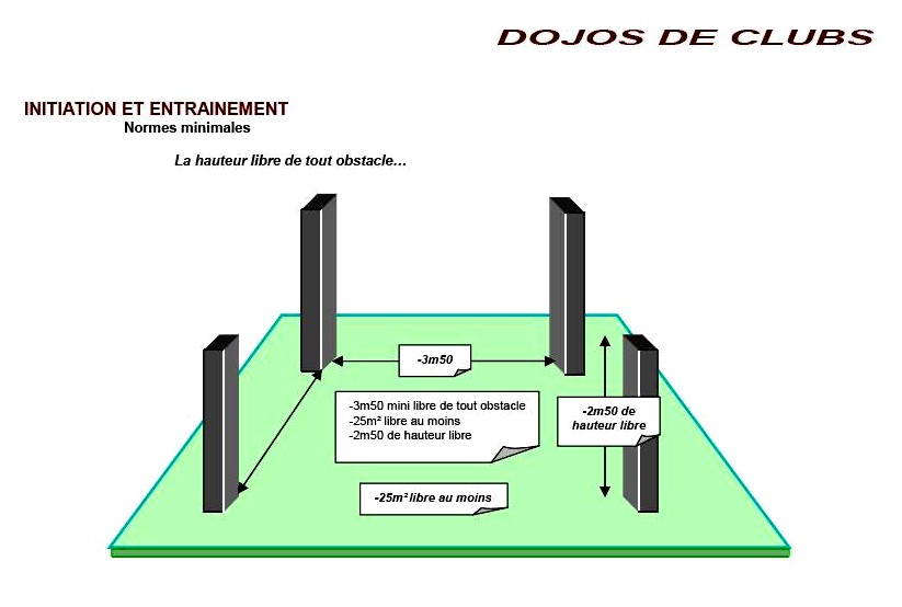 et le jujitsu) : 2,50 m pour les arts martiaux sans arme ; 3m50 pour