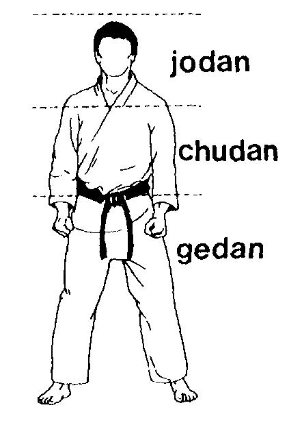 Jodan (niveau haut) chudan (niveau moyen) et gedan (niveau bas). Sur certains