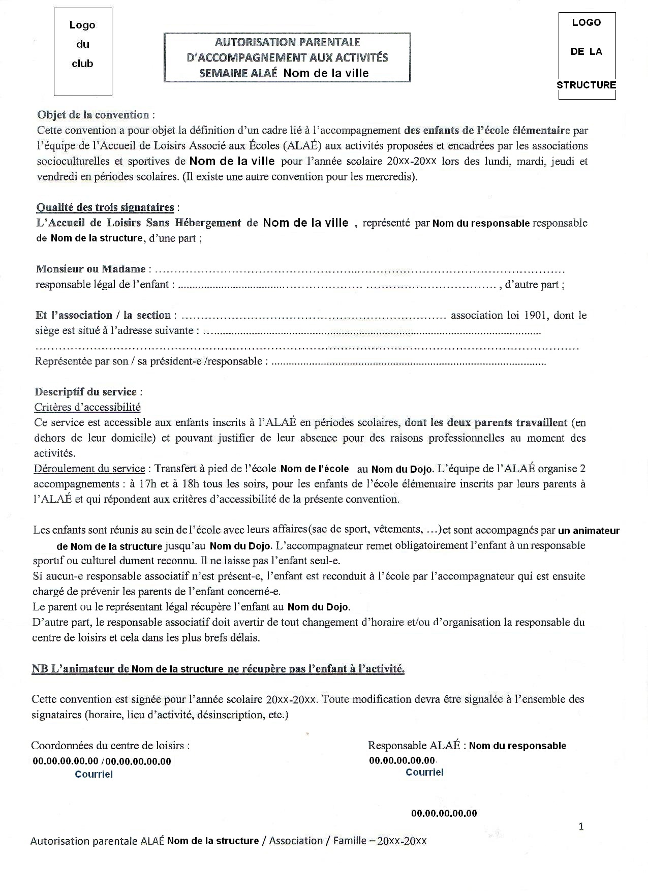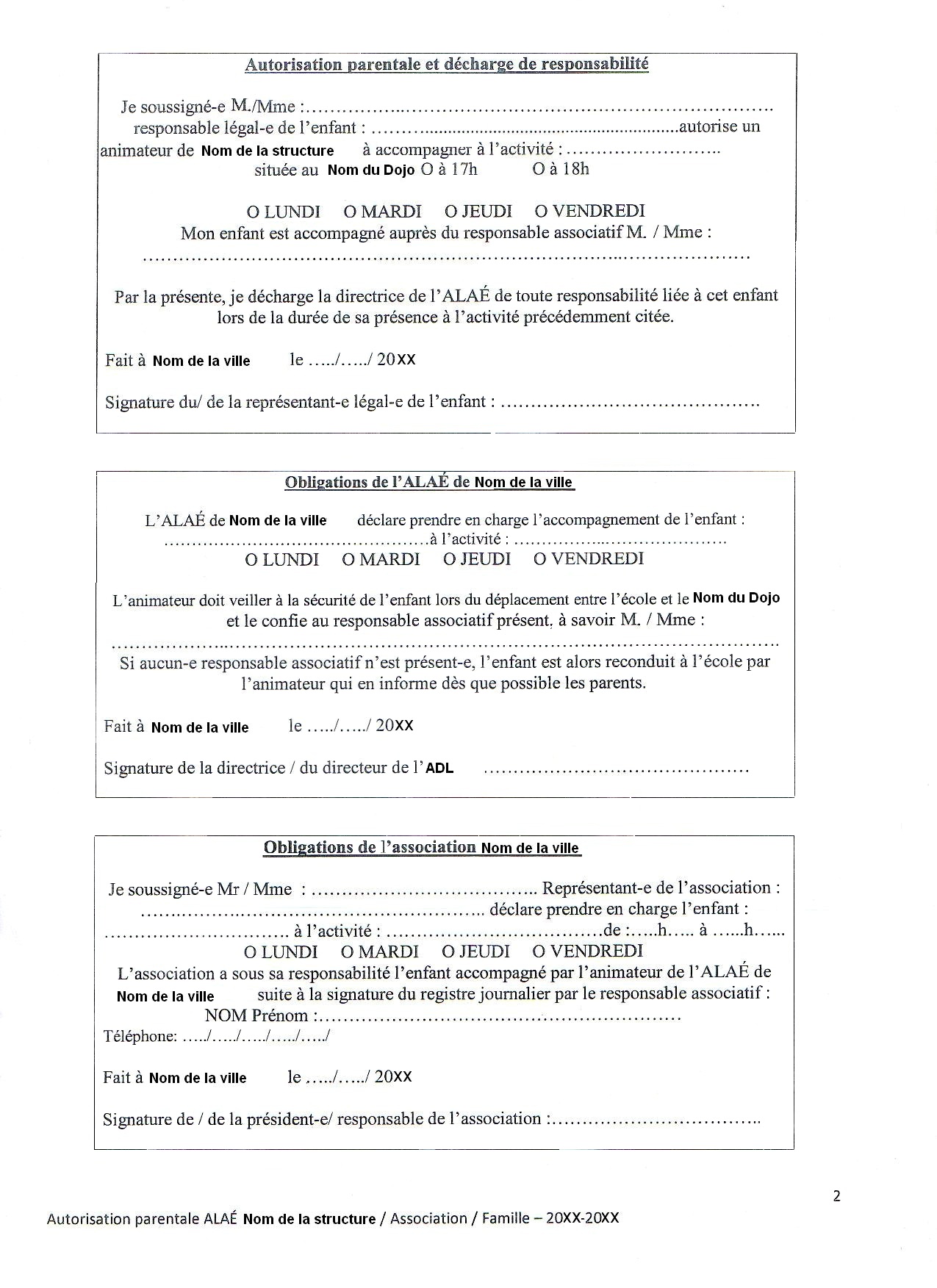 Je soussigné, autorise.........................................., enseignant au ............................. à véhiculer ......................................, de ............................................... directement au ............................................................. dans mon véhicule personnel dont l’immatriculation est : ............................... ainsi que le même trajet en sens inverse à l’issu de ............................... et à prendre toutes décisions nécessaires en cas d’accident.
