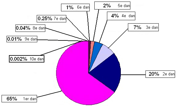 au-delà) : 06e dan : environ 76,1 % 07e dan : environ 18,7 % 08e dan : environ 4,3 % 09e dan : environ 0,8 % 10e dan : environ 0,1 % |
