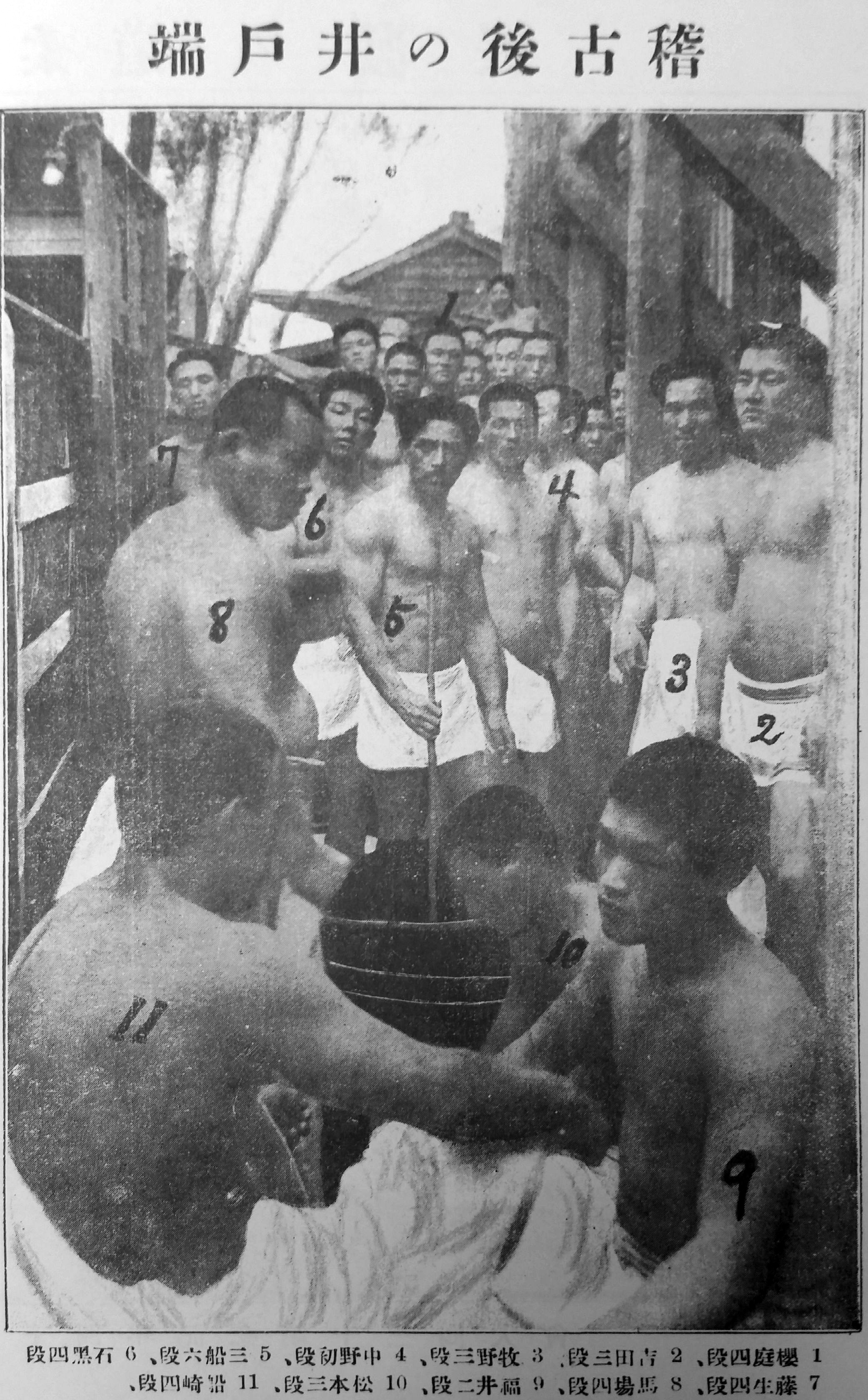 ans : (Mifune à gauche, source image) Ou encore, à 37 ans, en août 1920 : (Mifune est le n°5 – Source : Revue Yûkô no katsudô, « près du puits après l’entraînement [d’été, shochû keiko] ») Ou comme en témoigne encore le buste qui orne
