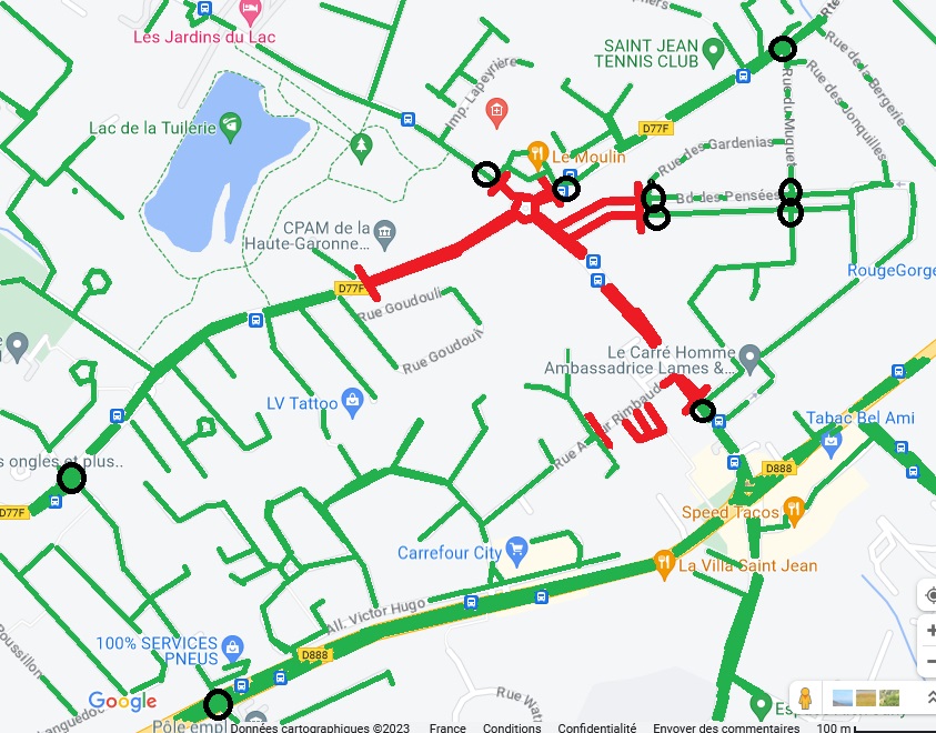 - les barres rouges sont le positionnement des interruptions de la circulation