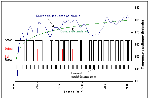 La courbe bleue représente l’évolution de la fréquence cardiaque du sujet pendant le test.