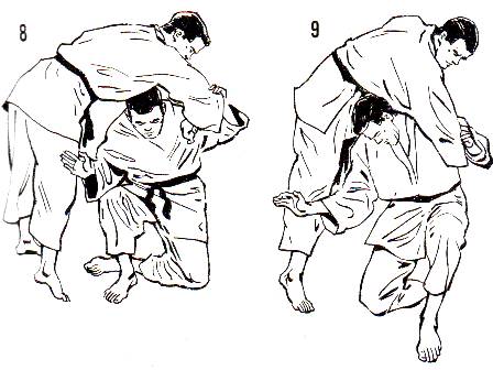 Renversement par la ceinture L'entrée est identique à celle de Sukui Nage. Tori se place sur le coté de Uke, qu'il saisit d’une main à la ceinture et l’autre main sur la hanche, puis se redresse et bascule l'adversaire sous son bras et autour de sa hanche. |