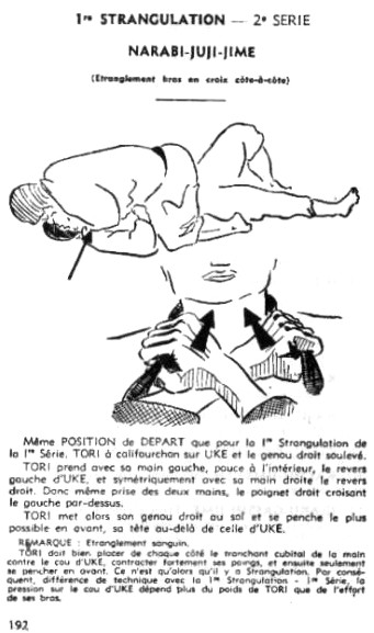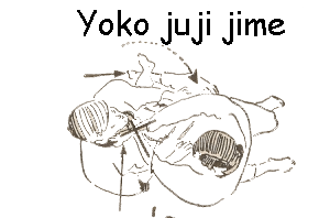 Gyaku Juji Jime : Étranglement sanguin en croix exercé les mains à l'envers (avec les phalanges via les poignets souples) |