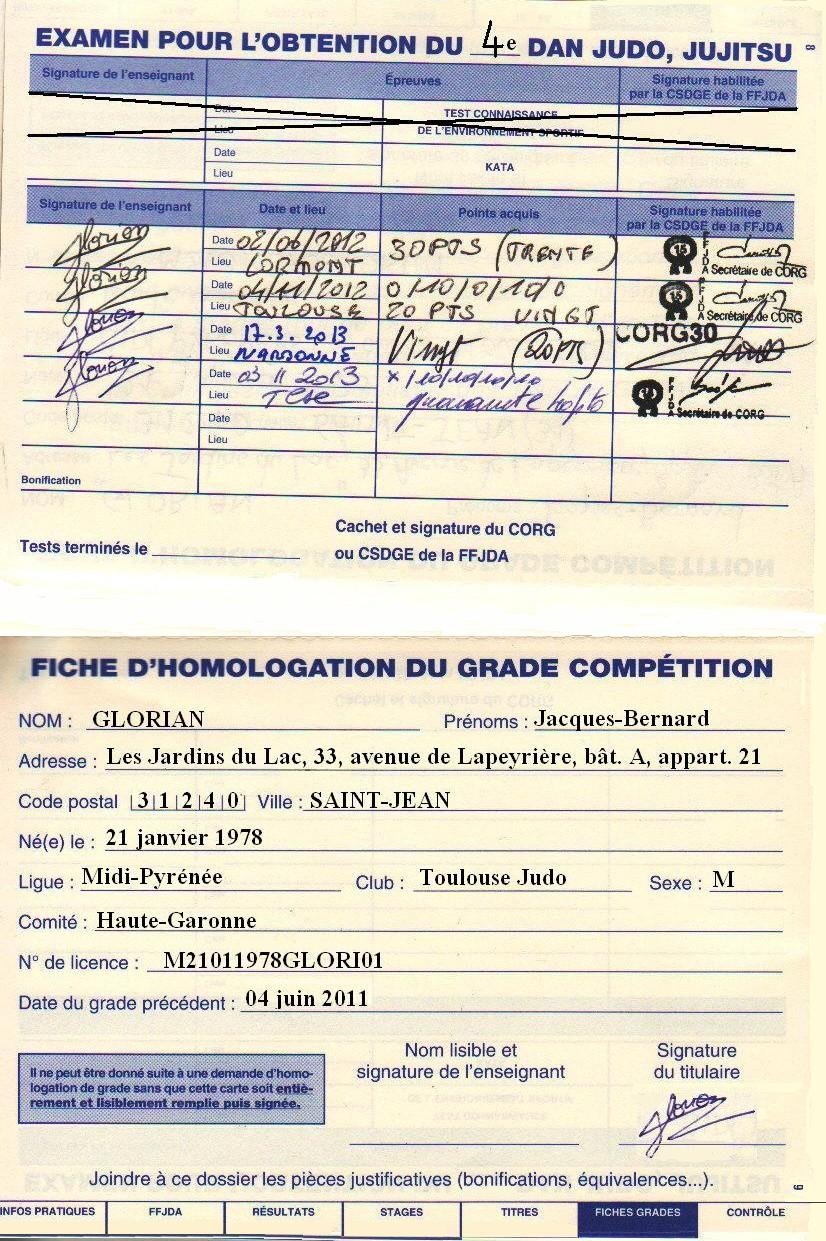 autres dan le passeport ou le carnet de grades (où figure le grade