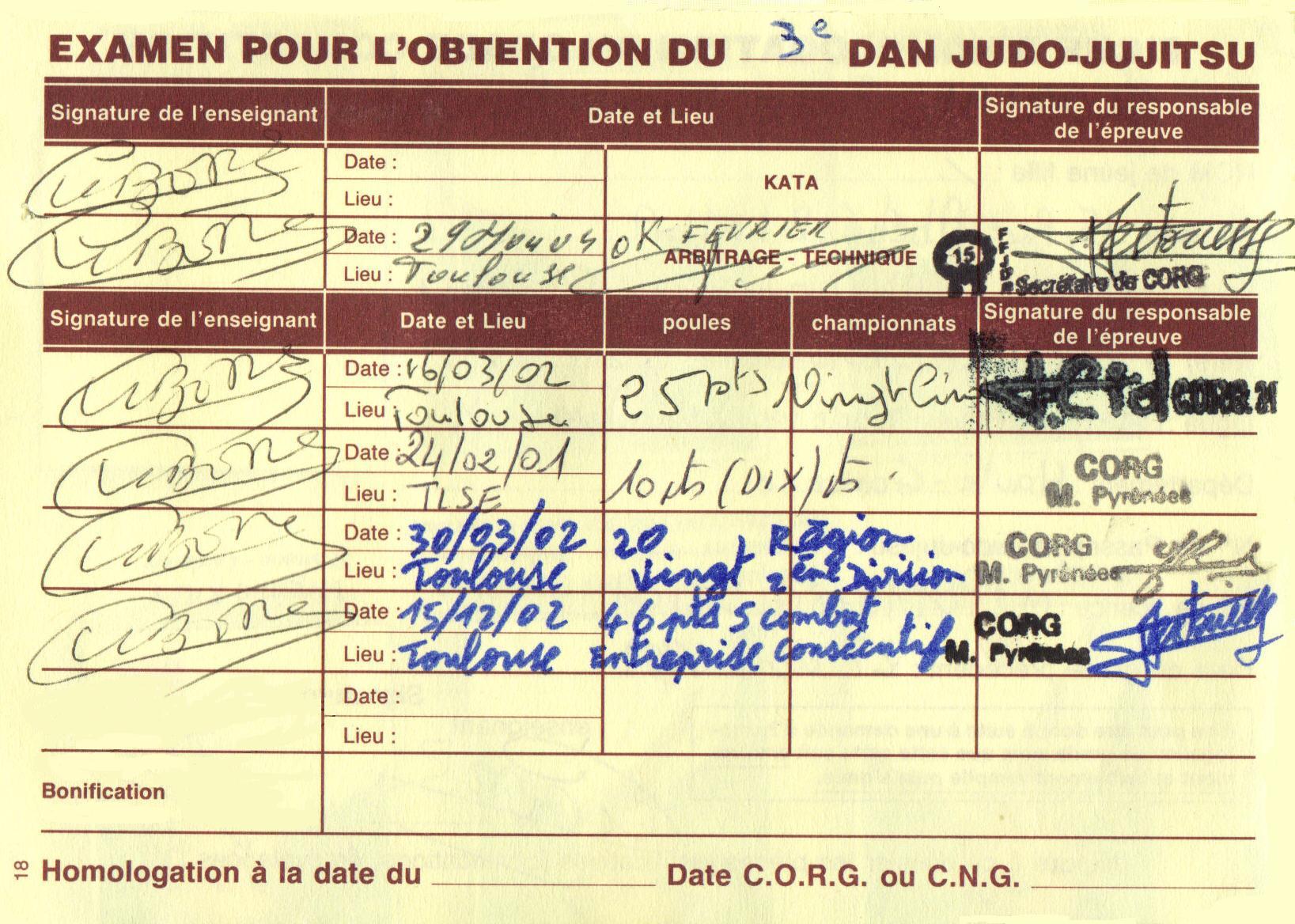 - Pour le 1er dan, le passeport ou le carnet de grades doivent être