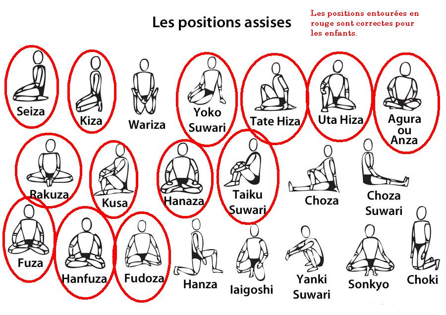 formes correctes pour s'asseoir (jambes pliées hors position