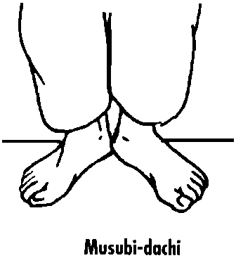 On démarre debout en musubi dachi. On commence par poser le genou gauche