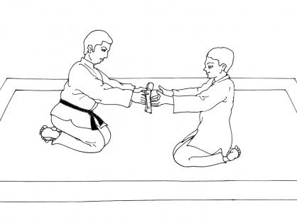 deux se saluent au sol. Ensuite, le maître et l'élève se