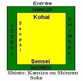 Le Sensei est le maître (l'ancien), les Kohai sont les élèves (les cadets) et les Senpai sont les élèves hauts gradés (les aînés).