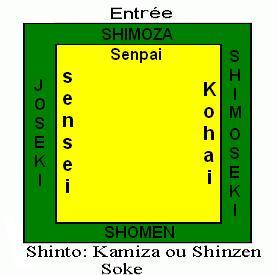 la salle, le Joseki. Cette orientation a une signification symbolique. Assis