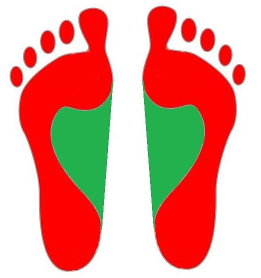 Les zoris sont des sortes de sandales revêtues de paille tressée servant à se déplacer entre le vestiaire et le bord du tatami. Compte tenu de l'empreinte d'un pied (en rouge), n'oubliez pas de mettre vos initiales sur la partie où le pied ne touche pas le zori (en vert) afin de ne pas confondre vos zoris avec ceux des autres.
